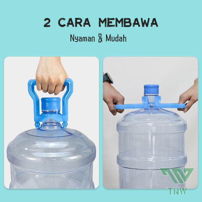| Desain Double Handle | Pegangan ganda memberikan keseimbangan sempurna dan cengkeraman yang lebih kuat, mencegah galon terpeleset. |