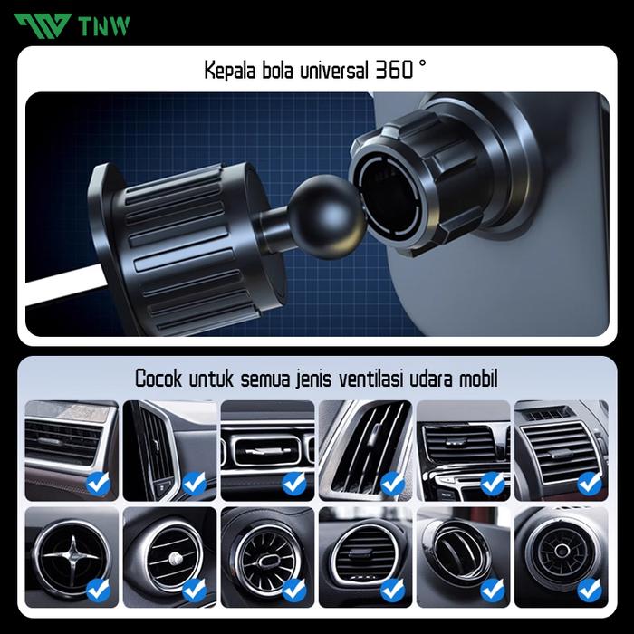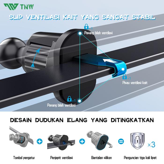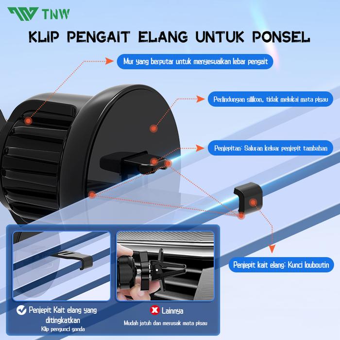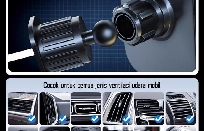 | Kait Klip Logam yang Kuat | Menancap kuat di ventilasi AC mobil, tahan getaran. Cocok untuk ventilasi horizontal dan vertikal. |