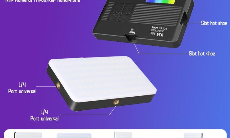 | Portabel | Hanya 120g dengan sekrup 1/4” untuk tripod dan dudukan cold shoe (kompatibel kamera/handphone). |