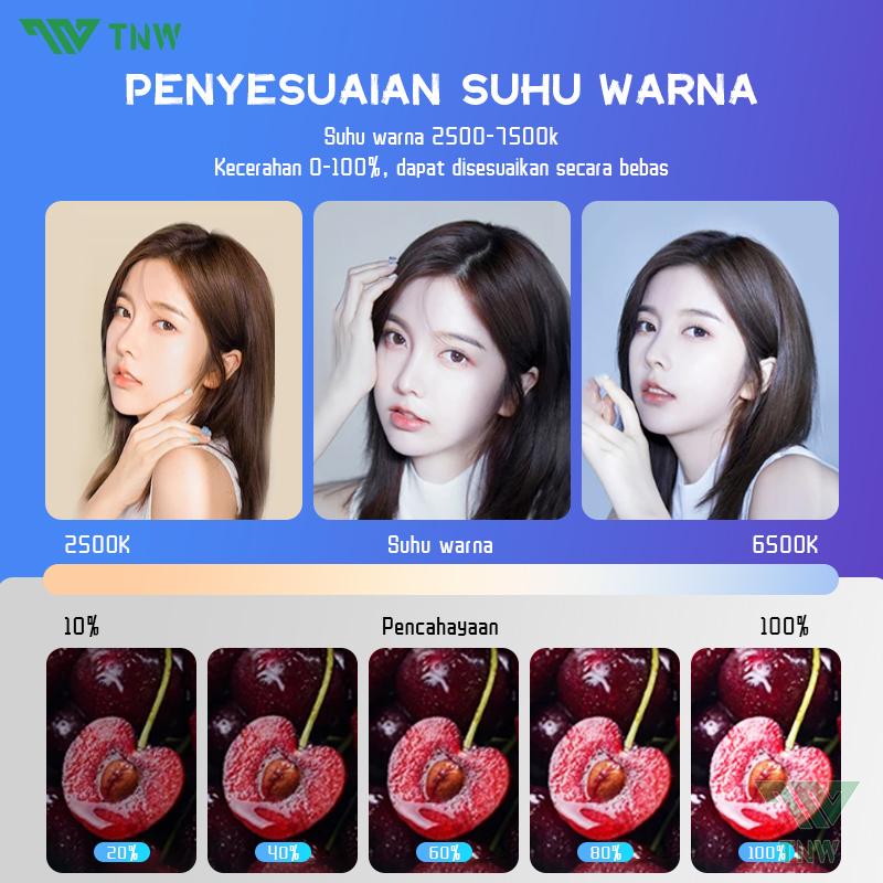 | Spektrum Warna Luas | 138 lampu LED dengan kontrol warna 0-360° dan saturasi penuh. Suhu warna 2700K-6500K + kecerahan 0-100%. |