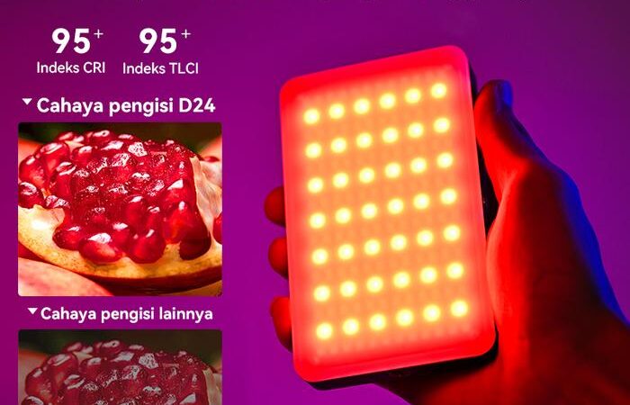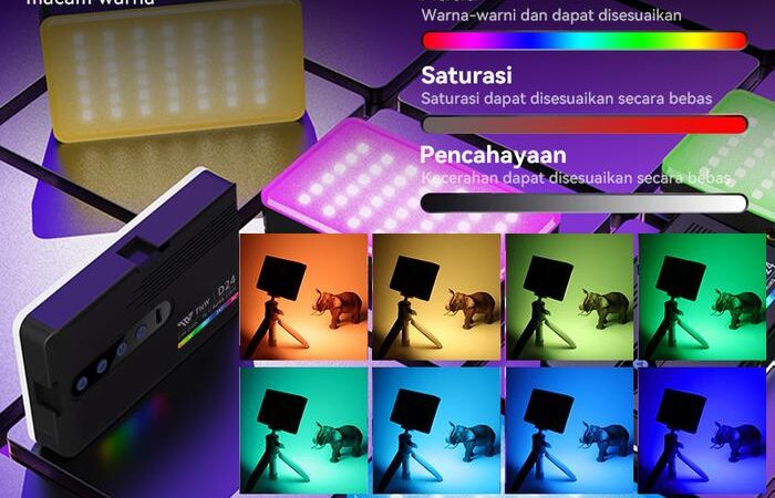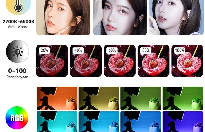 | Multi Mode Pencahayaan | Mode CCT, HSI, dan 12 efek khusus (strobe, HSI slow/fast) untuk berbagai kebutuhan kreatif. |
