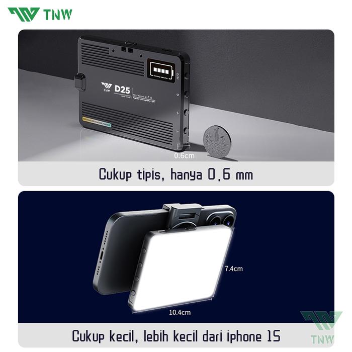 Temukan pengalaman berfoto dan membuat konten yang lebih profesional dengan TNW D25 Selfie Light Portable. Lampu klip mini yang dirancang untuk memenuhi semua kebutuhan pencahayaan Anda, mulai dari selfie, vlog, hingga konferensi video.