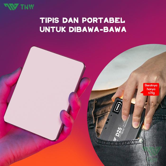 | Portabel & Informasi Baterai | Ringan (76g) dan mudah dibawa ke mana saja. Dilengkapi dengan LED display untuk memantau tingkat baterai secara real-time. |