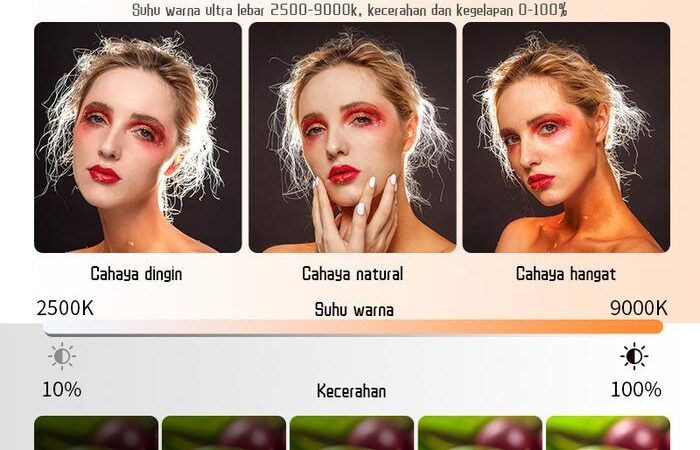 - 3000K-9900K: Rentang suhu warna yang dihasilkan lampu. 3000K menghasilkan cahaya kekuningan (hangat), sementara 9900K menghasilkan cahaya kebiruan (dingin). Menyesuaikan suhu warna memungkinkan Anda mencocokkan pencahayaan dengan lingkungan atau menciptakan suasana tertentu.