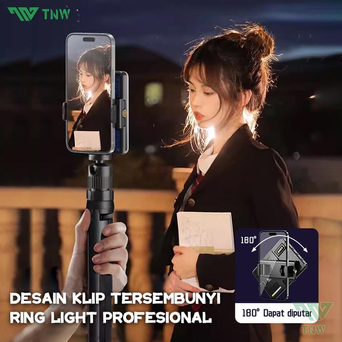 | Kompatibilitas Luas | Kompatibel dengan smartphone (lebar 66-95mm), tablet, laptop, dan tripod. Cocok untuk streaming, fotografi produk, panggilan video, dan sebagainya. |