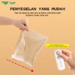 • Cling Film: Plastik tipis dan lengket untuk membungkus makanan, biasanya tidak kompatibel dengan sealer ini.