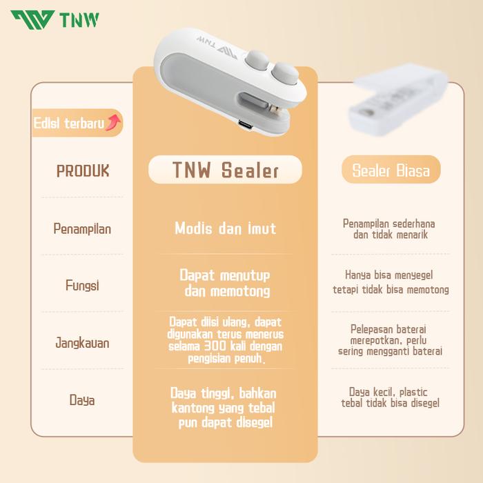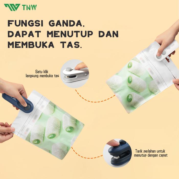 • 2-in-1 Snack Sealer: Alat multifungsi untuk menyegel dan membuka kemasan plastik.