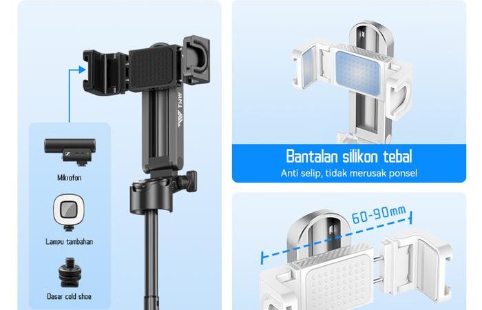 | Fungsi 3 in 1 | Bertransformasi dengan mudah menjadi Grip Phone Holder, Handheld Selfie Stick, atau Tripod Desktop yang stabil untuk live streaming, vlog, dan kebutuhan harian Anda. |