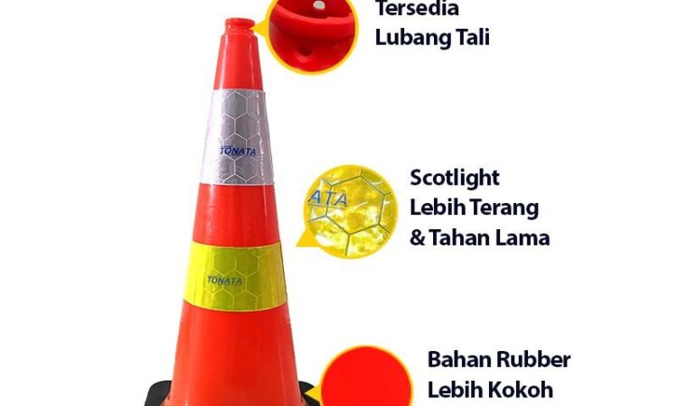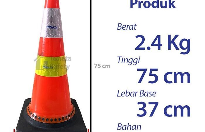 Tonata Rubber Cone hadir sebagai solusi perlengkapan safety lalu lintas yang andal. Dirancang dengan material PVC Rubber berkualitas tinggi, kerucut ini memiliki bobot 2.4 kg yang memberikan stabilitas luar biasa, sehingga tidak mudah terguling oleh angin atau getaran kendaraan. Dengan tinggi 75 cm dan alas persegi 37 cm x 37 cm, kehadirannya sangat terlihat dan efektif untuk membatasi area.