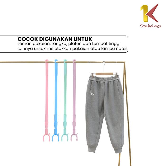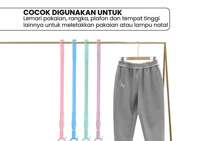 Tongkat serbaguna ini tidak hanya untuk menjemur dan mengambil pakaian, tetapi juga praktis untuk keperluan rumah tangga lainnya, seperti menggantung dekorasi atau lampu.