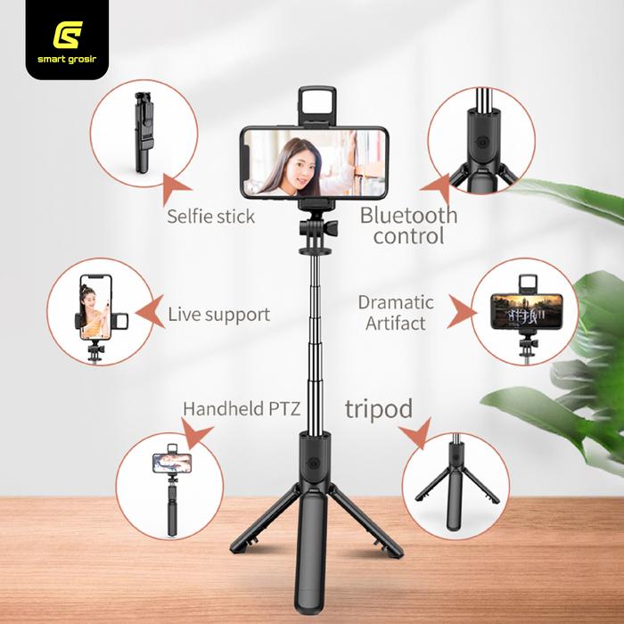 Temukan cara baru mengambil foto dan video dengan Tongsis Tripod Bluetooth 4-in-1 ini. Dirancang untuk segala kebutuhan kreatif, dari selfie solo hingga foto grup, tongsis ini adalah partner terbaik Anda.
