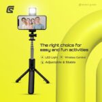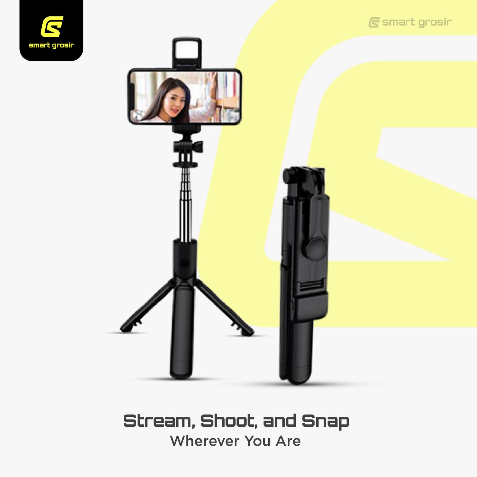 Dilengkapi dengan remote Bluetooth yang memudahkan Anda mengambil gambar dari jarak hingga 10 meter. Kaki tripod yang fleksibel dapat dibentuk dan dililitkan di berbagai permukaan untuk angle yang unik. Lampu LED terintegrasi memberikan pencahayaan instan untuk hasil foto yang lebih cerah dan sempurna dalam kondisi cahaya rendah.