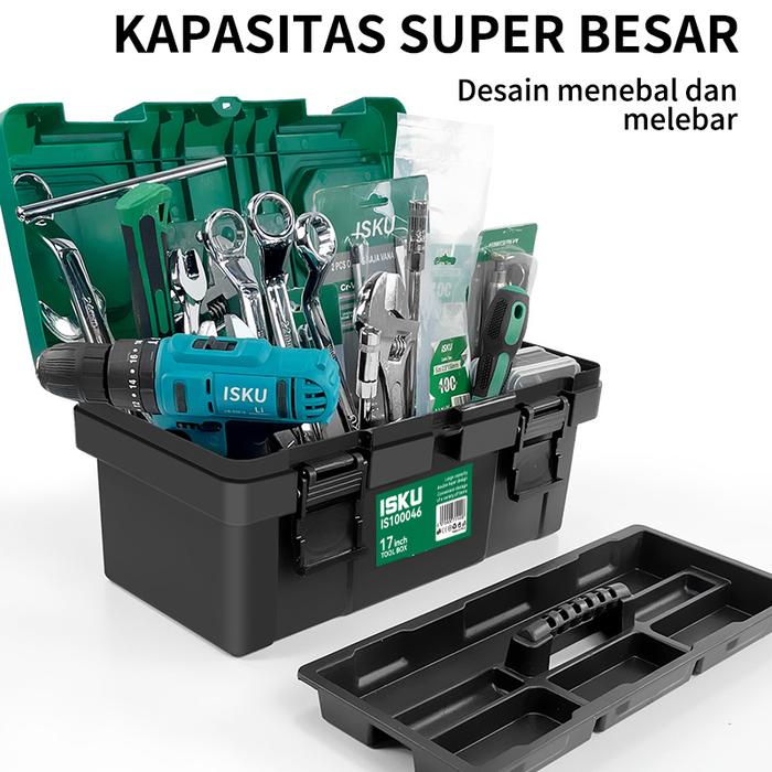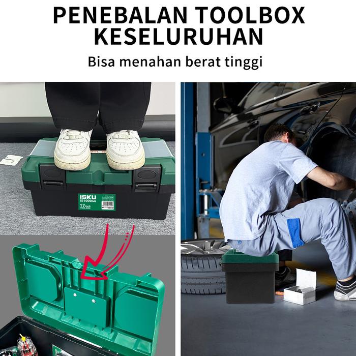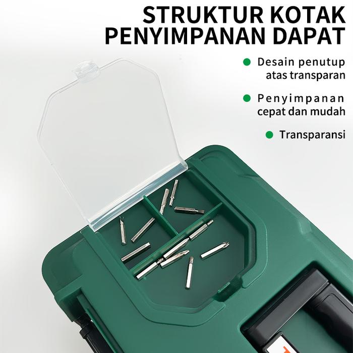 | Fitur Tambahan | 2 buah kotak mini di bagian atas untuk organisasi mur, baut, sekrup, dan aksesori kecil |