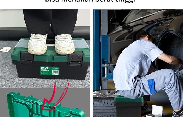 - Polypropylene (PP): Jenis plastik termoplastik yang dikenal memiliki ketahanan kimia yang sangat baik, kekuatan mekanik yang tinggi, dan daya tahan terhadap benturan. Material ini membuat toolbox tidak mudah retak bahkan dalam kondisi yang berat.