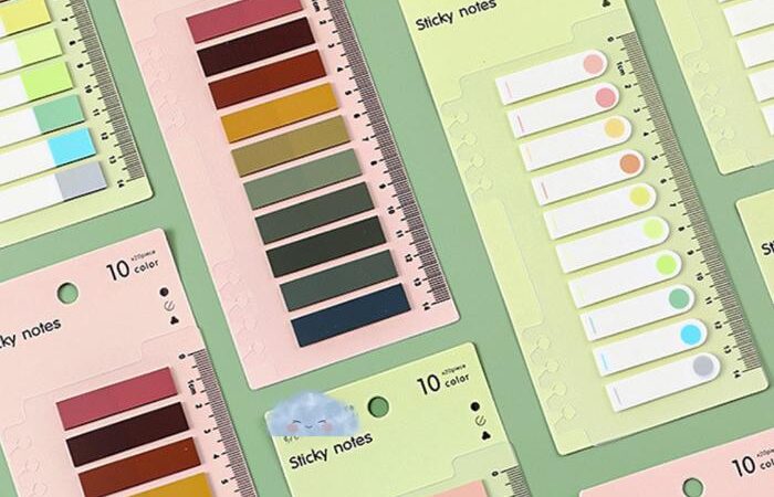 - Sticky Notes: Juga dikenal sebagai catatan tempel atau lembaran perekat, adalah kertas kecil dengan strip perekat di bagian belakangnya, digunakan untuk mencatat dan menempelkan pesan singkat.