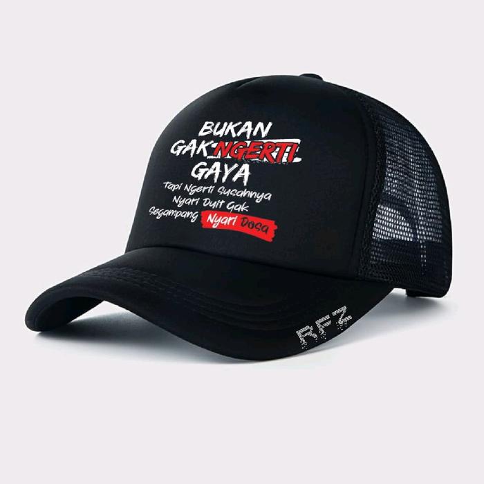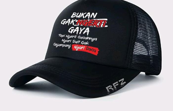 Tersedia dalam pilihan warna hitam yang elegan dan versatile, cocok dipadukan dengan berbagai gaya pakaian. Yang membuatnya unik adalah variasi motif kata-kata keren yang beragam, sehingga Anda bisa memilih yang paling sesuai dengan kepribadian Anda. Fitur pengatur lingkar kepala di bagian belakang dengan klip memastikan topi dapat disesuaikan dengan sempurna untuk segala ukuran kepala.
