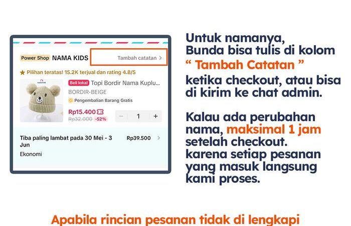- Pastikan penulisan nama (huruf kapital/kecil) sudah benar karena akan dibuat sesuai pesanan.