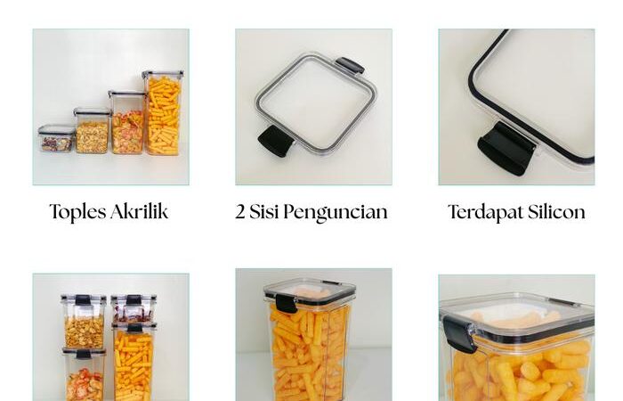 | Desain Transparan | Memudahkan Anda melihat isi toples tanpa perlu membuka tutupnya, sehingga lebih efisien dan terorganisir. |