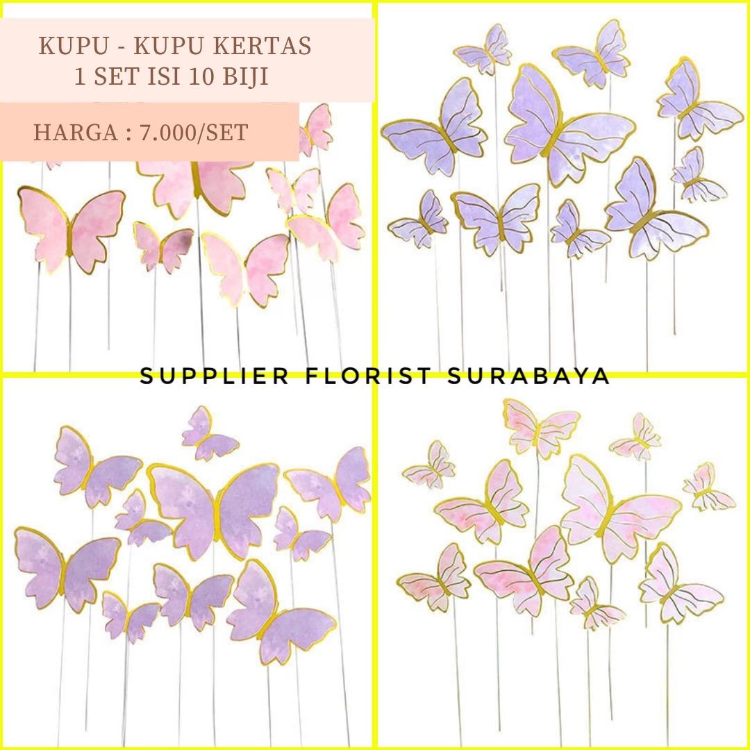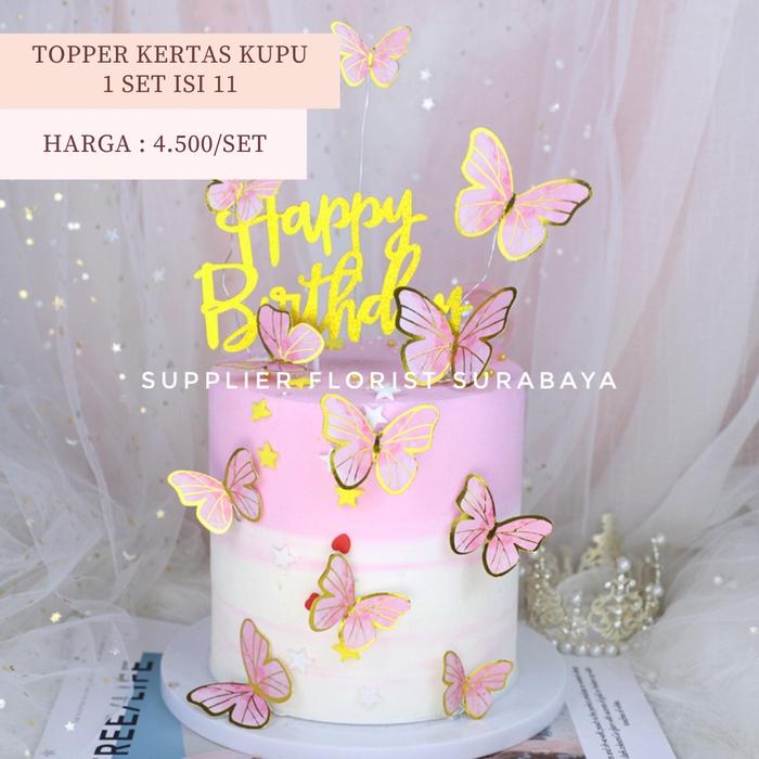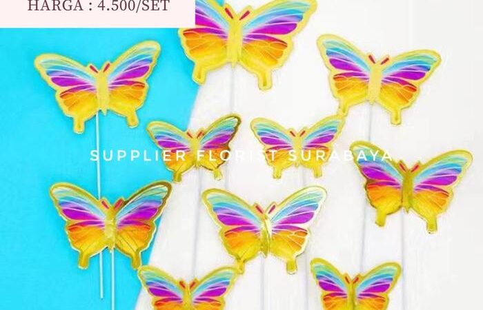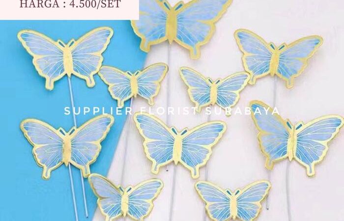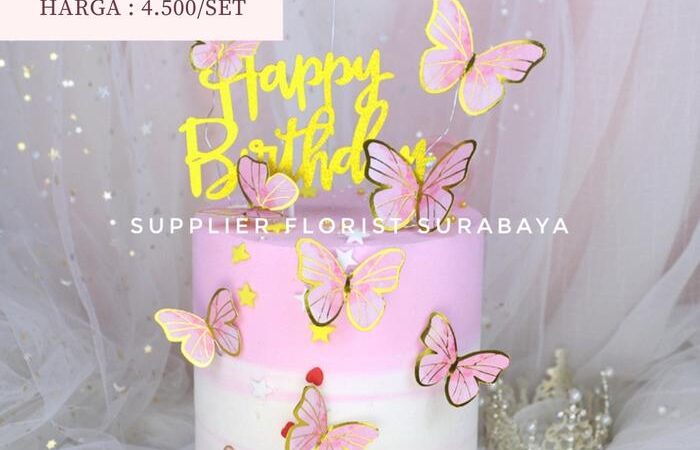 | Fitur | Setiap kupu-kupu dilengkapi dengan tiang atau kawat yang sudah terpasang, memudahkan Anda untuk menancapkannya langsung ke atas kue tart. |