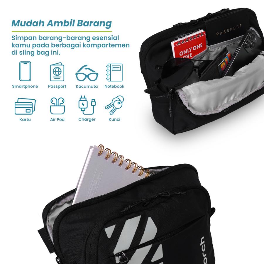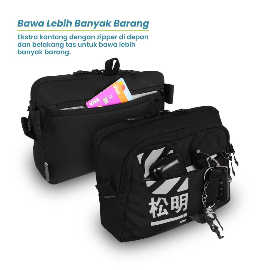| Fungsi 2 in 1 | Konversi mudah antara waist bag (tas pinggang) dan travel pouch (tas kecil) untuk menyesuaikan berbagai kegiatan. |