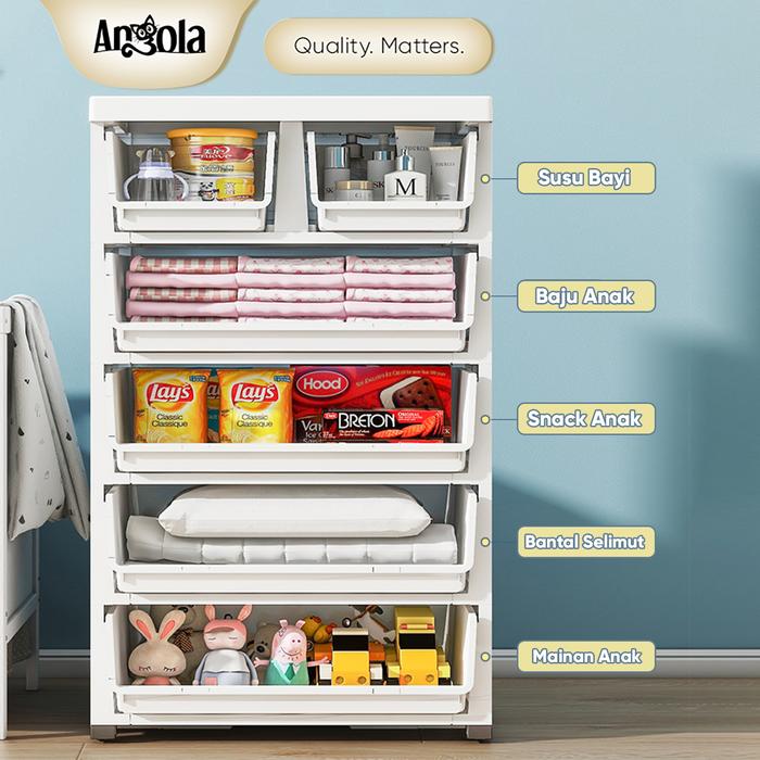 Solusi penyimpanan yang praktis, aman, dan menggemaskan untuk kamar anak. Lemari plastik susun ini hadir dengan desain kucing yang disukai buah hati, membuat kegiatan merapikan mainan dan baju menjadi lebih menyenangkan. Dengan kapasitas yang besar, lemari ini tidak hanya cocok untuk pakaian tetapi juga untuk menyimpan diaper, selimut, snack, buku, dan berbagai keperluan anak lainnya.