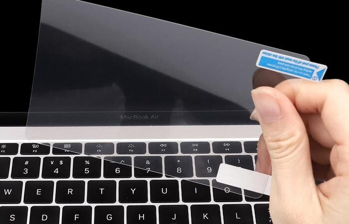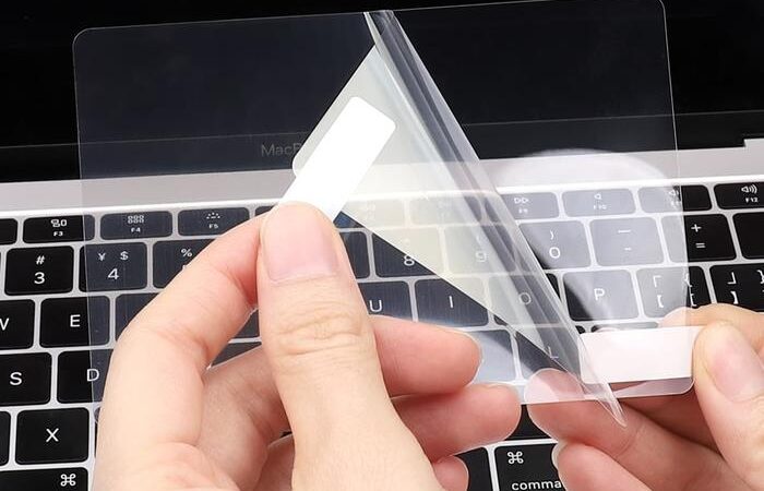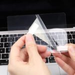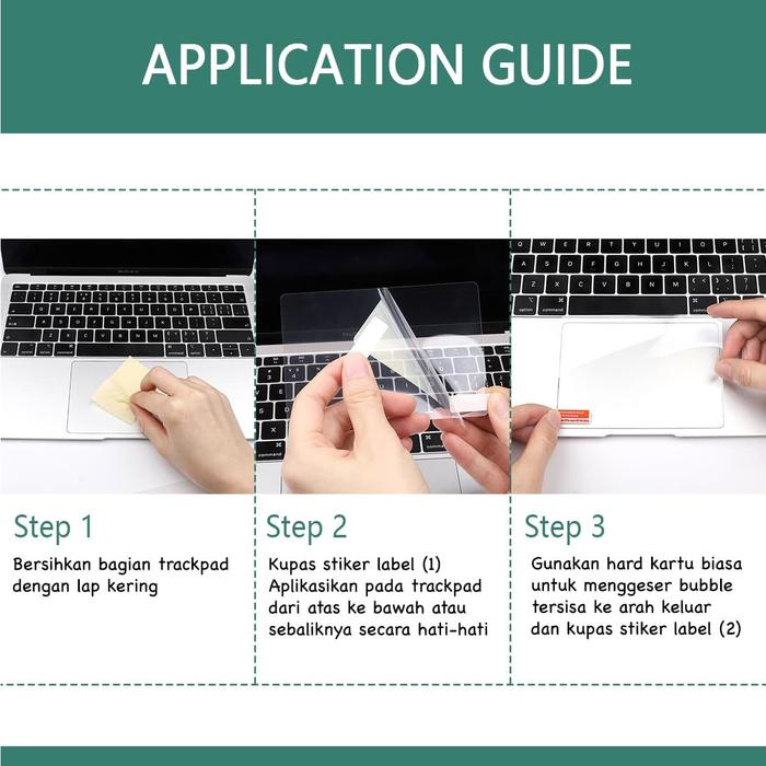 - Tempelkan film pelindung dengan hati-hati pada trackpad.