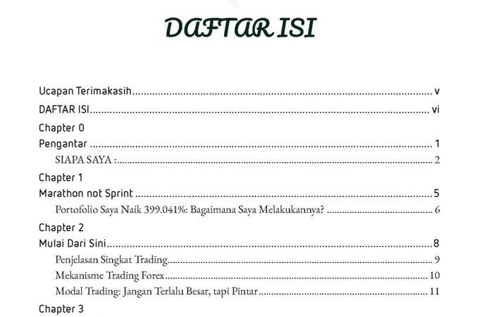 Ubah Pola Pikir Anda, dan Trading Anda Akan Jauh Lebih Baik. Buku ini memaparkan perjalanan Rizki Aditama mengelola modal kecil hingga meraih keuntungan ratusan ribu persen, setelah pulih dari kerugian fantastis sebesar Rp 400 juta. Dirancang berdasarkan 12 tahun pengalaman jatuh bangun di pasar, buku ini menjadi panduan untuk mempercepat proses belajar dan meningkatkan kualitas trading Anda secara signifikan.