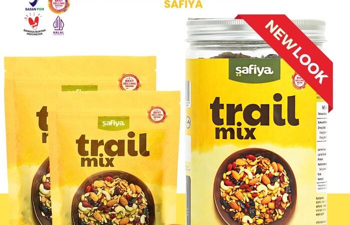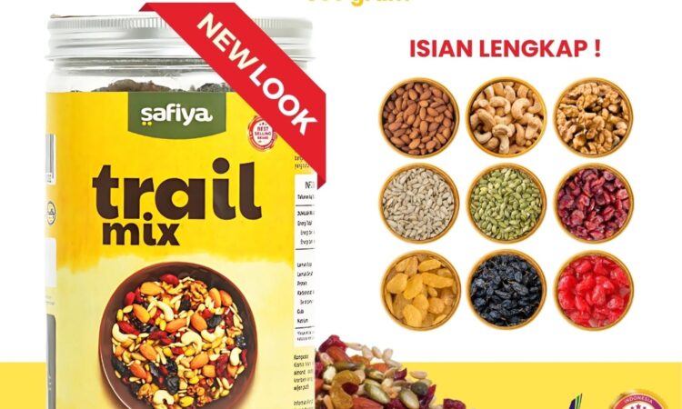 Dengan komposisi 10 bahan premium dalam satu kemasan (Almond, Mete, Walnut, Sunflower Seed, Pumpkin Seed, Cranberry, Golden Raisin, Dark Raisin, Goji Berry, dan White Sesame Seed), Trail Mix Safiya adalah solusi praktis untuk energi sehari-hari yang telah terdaftar BPOM RI MD.