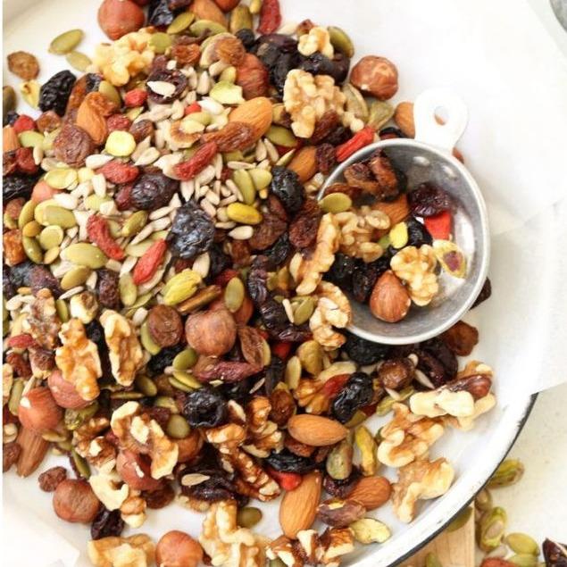 - Trail Mix: Campuran makanan yang biasanya berisi kacang-kacangan, biji-bijian, dan buah-buahan kering. Awalnya dikemas sebagai sumber energi yang praktis untuk aktivitas hiking (jelajah alam).