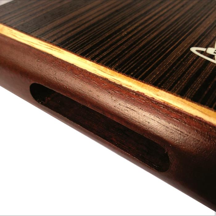 - Membran Tapa: Bagian depan cajon (biasanya terbuat dari kayu tipis) yang dipukul untuk menghasilkan suara. Pada model ini, membran terbuat dari kayu ebony yang dikenal padat dan menghasilkan suara treble yang tajam.