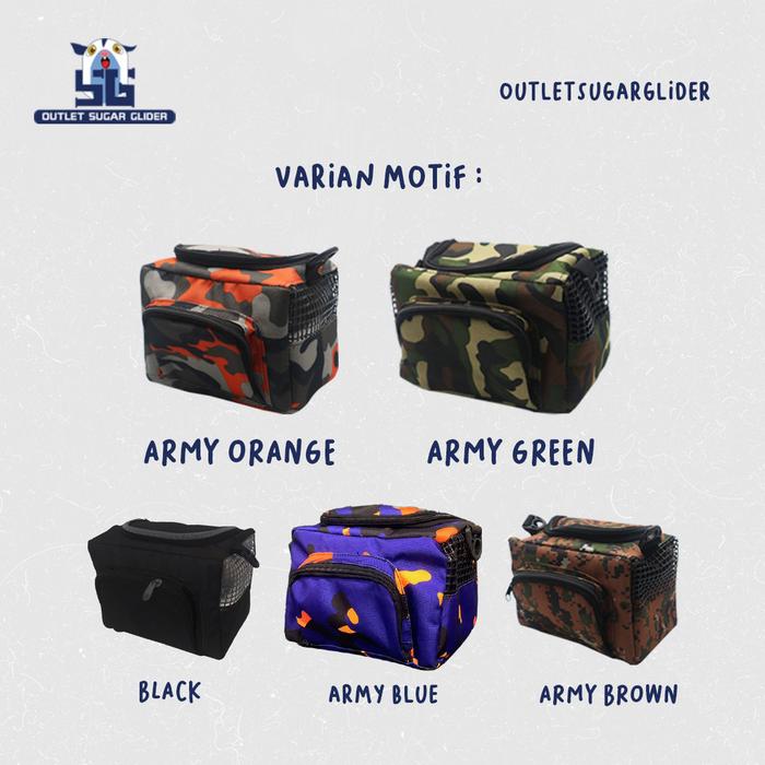 Travel Pouch Sugar Glider dengan desain kubus yang ergonomis, nyaman, dan multifungsi. Dibuat dari bahan import berkualitas tinggi yang lembut, aman, dan tahan lama untuk kenyamanan hewan peliharaan Anda.