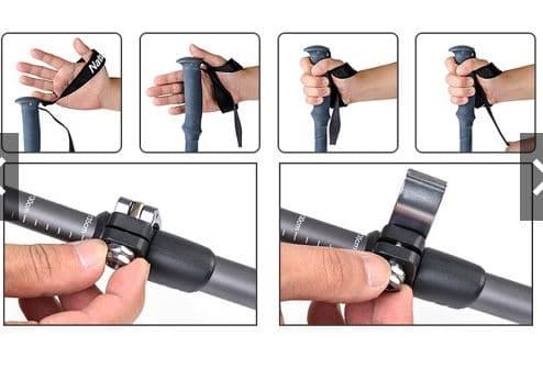 - Nodes: Titik sambungan pada trekking pole yang memungkinkan tongkat untuk diperpanjang atau dipendekkan.