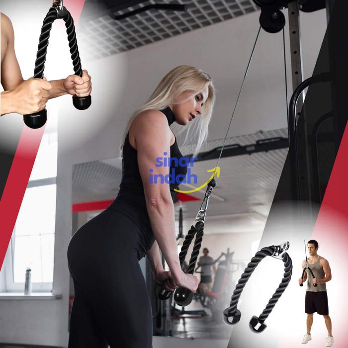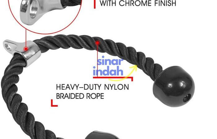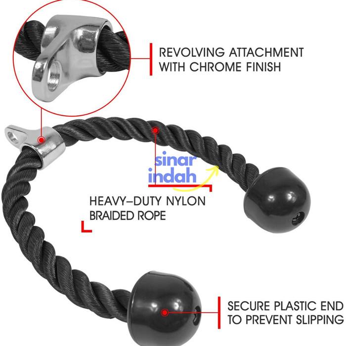 Dibangun dengan material berkualitas tinggi, tali terbuat dari Nylon dan Fiber berkekuatan tinggi dengan diameter 28mm yang nyaman digenggam. Dilengkapi dengan rotary attachment berbahan glass yang memastikan pergerakan yang halus dan mengurangi tekanan pada pergelangan tangan. Desainnya yang kokoh dengan berat sekitar 1kg menjamin ketahanan dan stabilitas selama sesi latihan intensif. Sangat cocok digunakan pada weight stack cable equipment di gym atau dengan alat pulley sederhana untuk penggunaan di rumah.