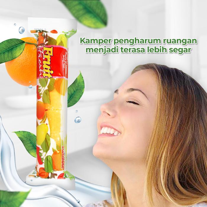 | Wangi buah segar tahan lama | Gantung atau letakkan di lemari pakaian | Isi: 3 packs x 6 pcs kamper |