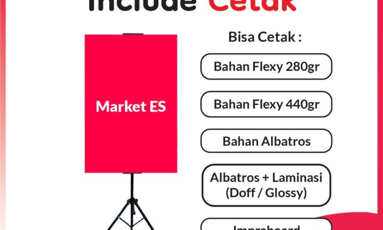 | Bahan Banner | Flexy 280gr/440gr, Albatros, Impraboard (optional laminasi doff/glossy) |