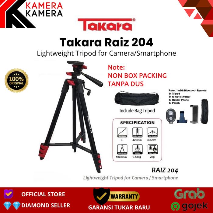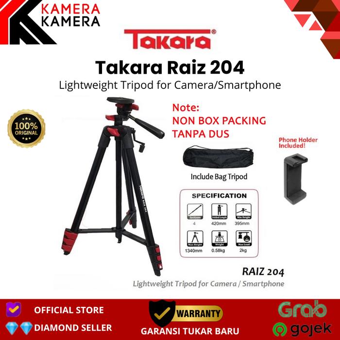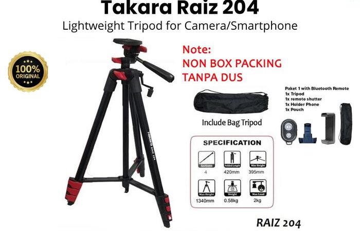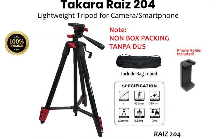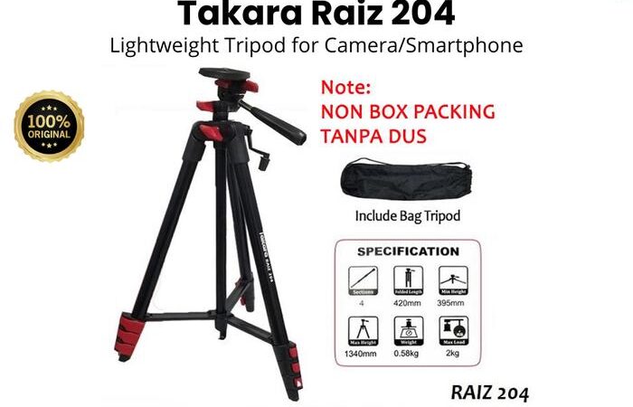 Takara Raiz 204 adalah tripod premium dari TAKARA yang didesain untuk fotografer dan konten kreator. Dibuat dengan material aluminium berkualitas tinggi, tripod ini ringan (hanya 0,58 kg) namun mampu menopang beban hingga 2 kg. Dengan 4 section kaki yang dapat disesuaikan, tinggi tripod bisa diatur dari 42 cm hingga 134 cm, memberikan fleksibilitas untuk berbagai kebutuhan pemotretan.