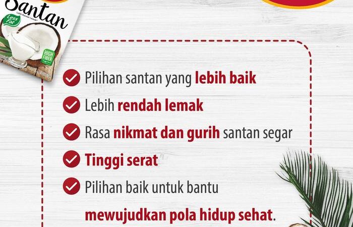 | Rendah Lemak | Kandungan lemak 50% lebih rendah dibanding santan segar. |