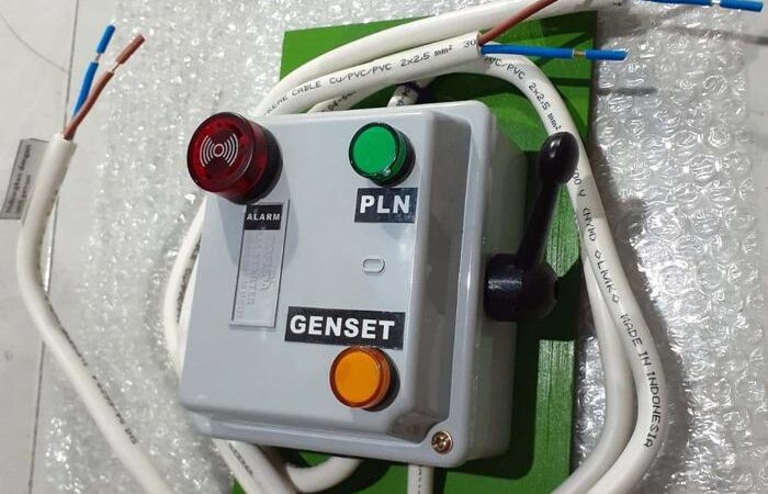 - ATS (Automatic Transfer Switch): Sakelar pemindah otomatis yang mengalihkan sumber daya listrik dari PLN ke genset (atau sebaliknya) secara otomatis saat terjadi pemadaman. Produk ini adalah versi manualnya.