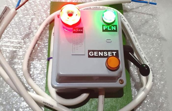 | Indikator & Alarm | Lampu indikator PLN (hijau), Genset (kuning), dan alarm (merah) dengan bunyi “Biiip… Biiip… Biiip…” |
