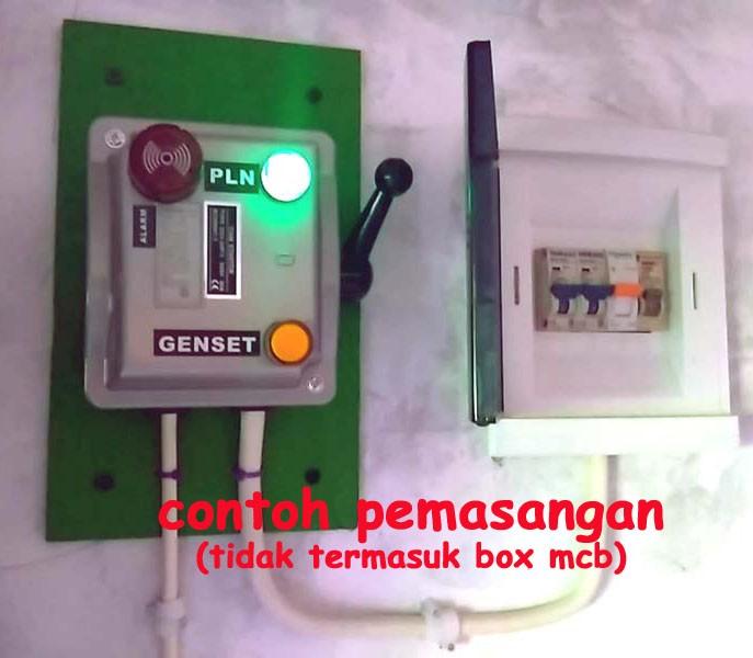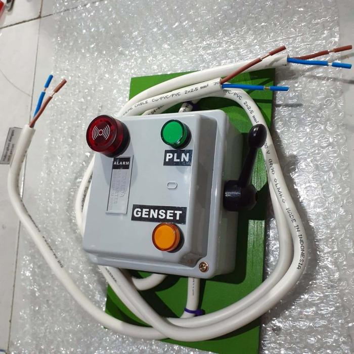 | Indikator & Alarm | Lampu indikator PLN (hijau), Genset (kuning), dan alarm (merah) dengan bunyi “Biiip… Biiip… Biiip…” |