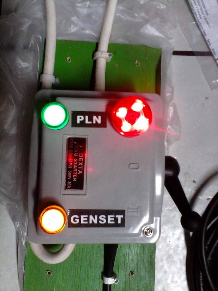 - Saat PLN padam, nyalakan genset → lampu indikator kuning menyala → pindahkan tuas ke posisi genset.