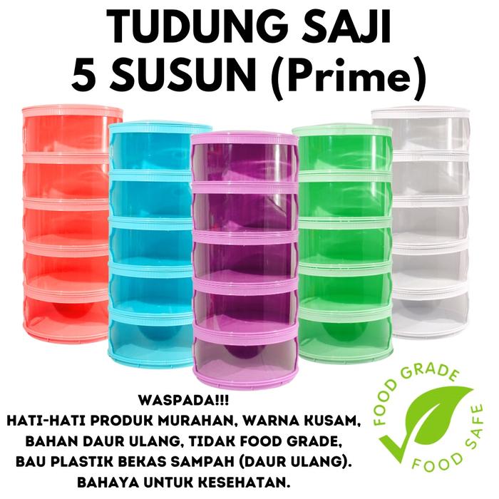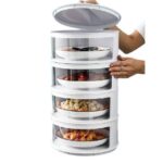 Tudung saji multilayer Jeon dengan bahan ABS food grade yang aman untuk makanan, tahan panas, dan bebas BPA/PVC. Desain 4-5 susun sudah dirakit, siap pakai, dan hemat ruang.
