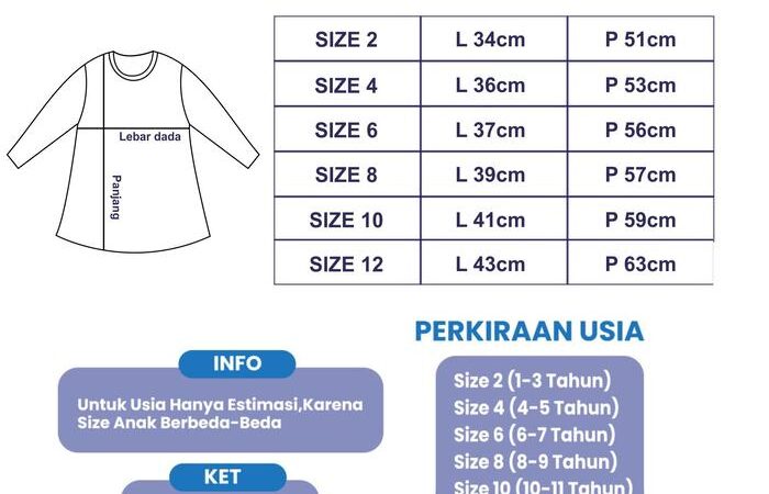 - Ukuran usia hanya perkiraan, sesuaikan dengan ukuran anak.