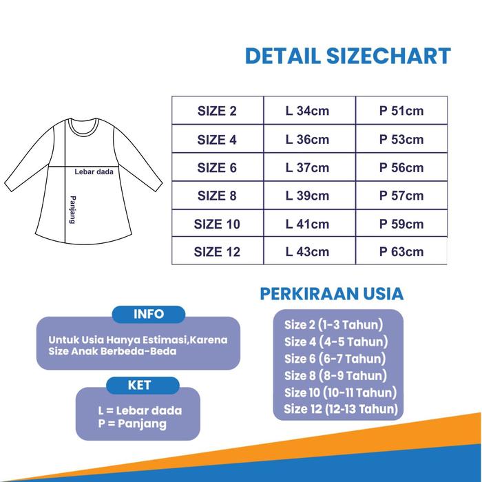 - Ukuran usia hanya perkiraan, sesuaikan dengan ukuran anak.