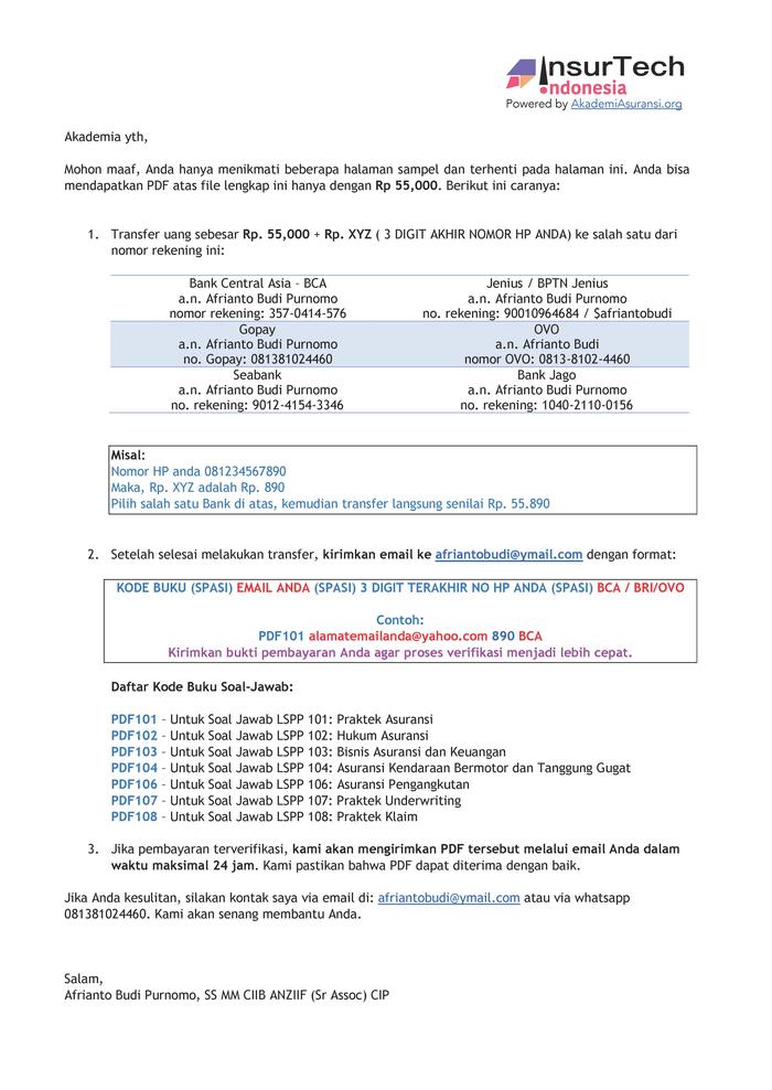 - Modul 102: Hukum Asuransi: Salah satu materi ujian sertifikasi dari AAMAI yang menguji pemahaman mengenai dasar-dasar hukum yang mengatur industri asuransi di Indonesia.