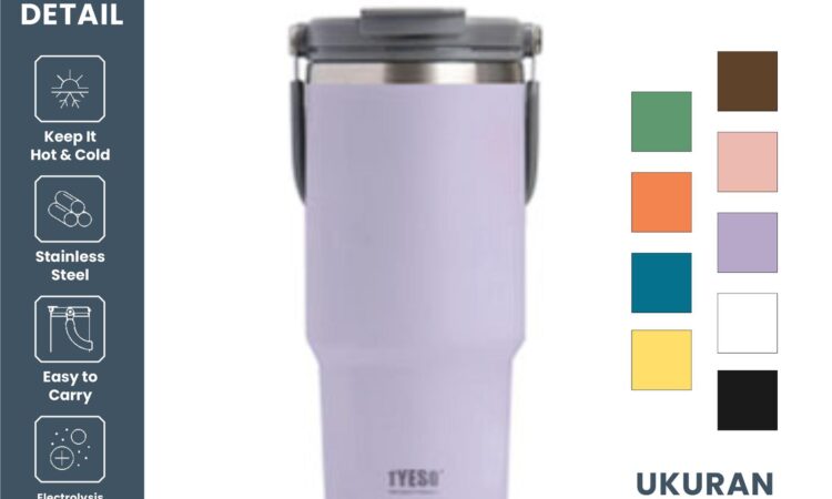 Tumbler TYESO TS-8830 dengan kapasitas besar 1200mL adalah solusi sempurna untuk menjaga hidrasi sepanjang hari. Dirancang dengan teknologi vacuum insulated, tumbler ini mampu mempertahankan suhu minuman panas hingga 12 jam dan dingin hingga 24 jam. Dibuat dari material Stainless Steel 304 food grade yang aman dan bebas BPA, menjamin setiap tegukan Anda terjaga kualitasnya.