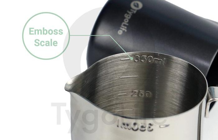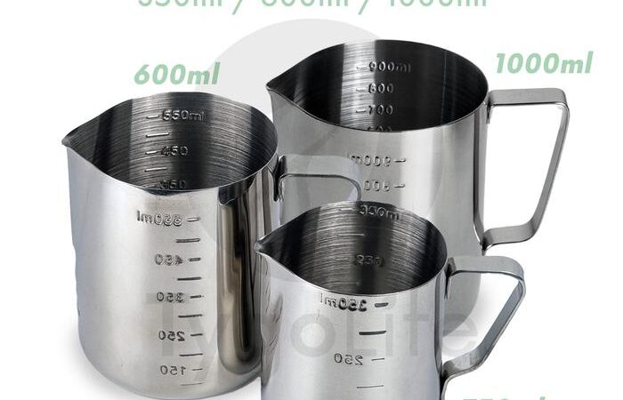 | Pilihan Ukuran | 350ml (latte/cappuccino), 600ml (latte art training), 1000ml (high volume). |