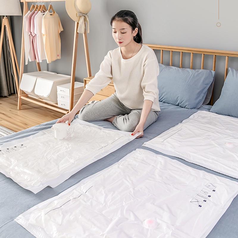 - Vacuum Bag: Kantung plastik kedap udara untuk kompresi penyimpanan, mengurangi volume barang dengan menghilangkan oksigen di dalamnya.