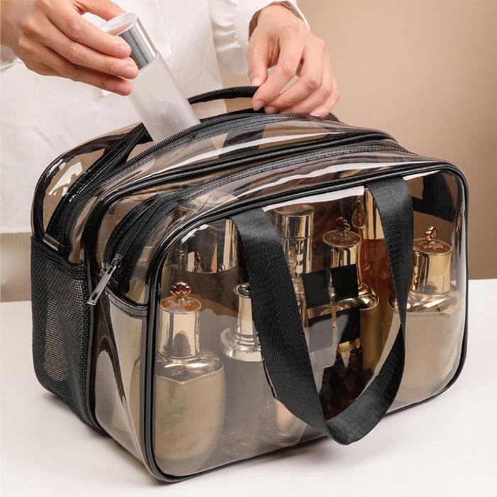 | Desain Transparan | Memudahkan Anda menemukan barang secara cepat tanpa perlu membuka tas. Tampilan minimalis dan modern. |