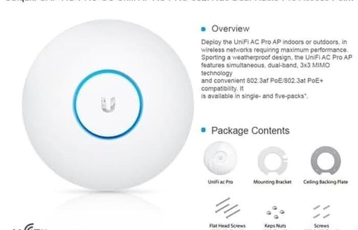 Dilengkapi dengan teknologi MIMO 3×3, UAP-AC-PRO memastikan koneksi yang stabil dan kuat untuk banyak perangkat secara bersamaan. Perangkat ini mendukung PoE (Power over Ethernet) mode 802.3af/at, memudahkan instalasi dengan hanya satu kabel ethernet untuk daya dan data. Dua port Gigabit Ethernet memungkinkan koneksi yang cepat dan fleksibel. Desainnya yang sleek dan kemampuan pemasangan instan (Instant Upgrade) memudahkan integrasi ke dalam berbagai lingkungan.